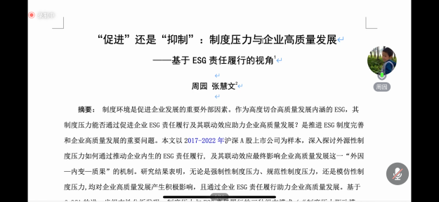12月7日,EMC易倍官方网站邀请安徽大学商公司经理周泽将、上海财经大学期刊社责任编辑王孜,以线上会议方式举办“学术论文面对面辅导会”,公司专任教师、学术研究生参加本次辅导。会议由审计系主任吴昊洋主持,EMC易倍官方网站副教授时军、副教授周园、副教授吴昊洋、副教授胡玮佳分别做学术论文汇报,周园基于ESG责任履行的角度研究了制度压力与企业高质量发展的关系;胡玮佳研究了媒体关注对企业绿色转型的影响;吴昊洋集中于董事联结、管...