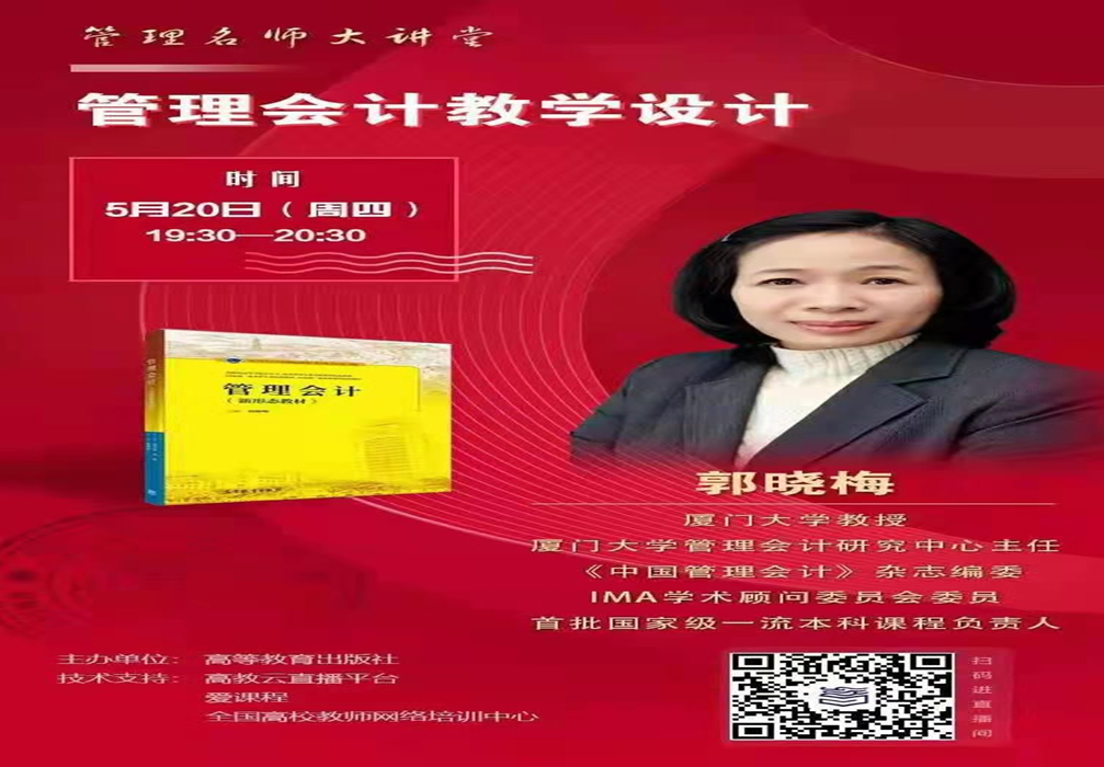 5月20日,EMC易倍官方网站组织公司专任教师收看厦门大学郭晓梅老师关于“管理会计教学设计”专题线上讲座。郭晓梅老师是厦门大学管理会计研究中心主任、《中国管理会计》杂志编委、IMA学术顾问委员会委员、首批国家级一流本科课程负责人。郭晓梅老师从管理会计大纲设计、管理会计教学手段、管理会计教学展示三个方面进行讲解。郭老师强调管理会计通过制度设计、目标分解、业绩计量等手段控制执行过程与结果、以实现目标,其主要职能是...
