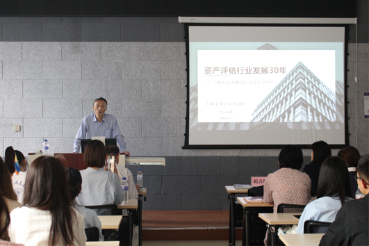 6月7日,EMC易倍官方网站邀请吉林省资产评估协会秘书长纪占双,在逸夫教学楼2211作题为“资产评估行业发展三十年”主题学术报告。山东上和土地房地产评估测绘有限公司长春市分公司丁海峰、宋贺,吉林金石资产评估有限责任公司胡月,吉林华夏房地产资产评估有限公司王青红、宇季,吉林财智资产评估有限公司刘利丽,吉林市正大资产评估咨询有限责任公司王冬玲、刘佳以及EMC易倍官方网站经理梁毕明、公司资产评估专业本科生和部分研究生参加会议...
