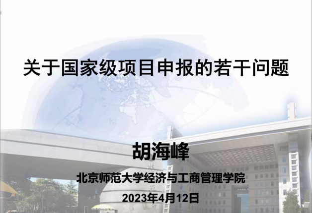 4月12日,EMC易倍官方网站举办2023年“两金”项目申报系列(线上)辅导会,本次辅导邀请北京师范大学经济与工商管理公司金融系主任、博士生导师胡海峰教授作“关于国家级项目申报的若干问题”的专题报告。报告会由公司经理梁毕明主持,公司教师及2021级、2022级全日制研究生参加会议。胡海峰向公司师生介绍了国家社科基金项目的基本情况,并从国家社科基金项目的申请入手,重点介绍了项目选题以及申请书活页的撰写等。胡海峰指出,项目...