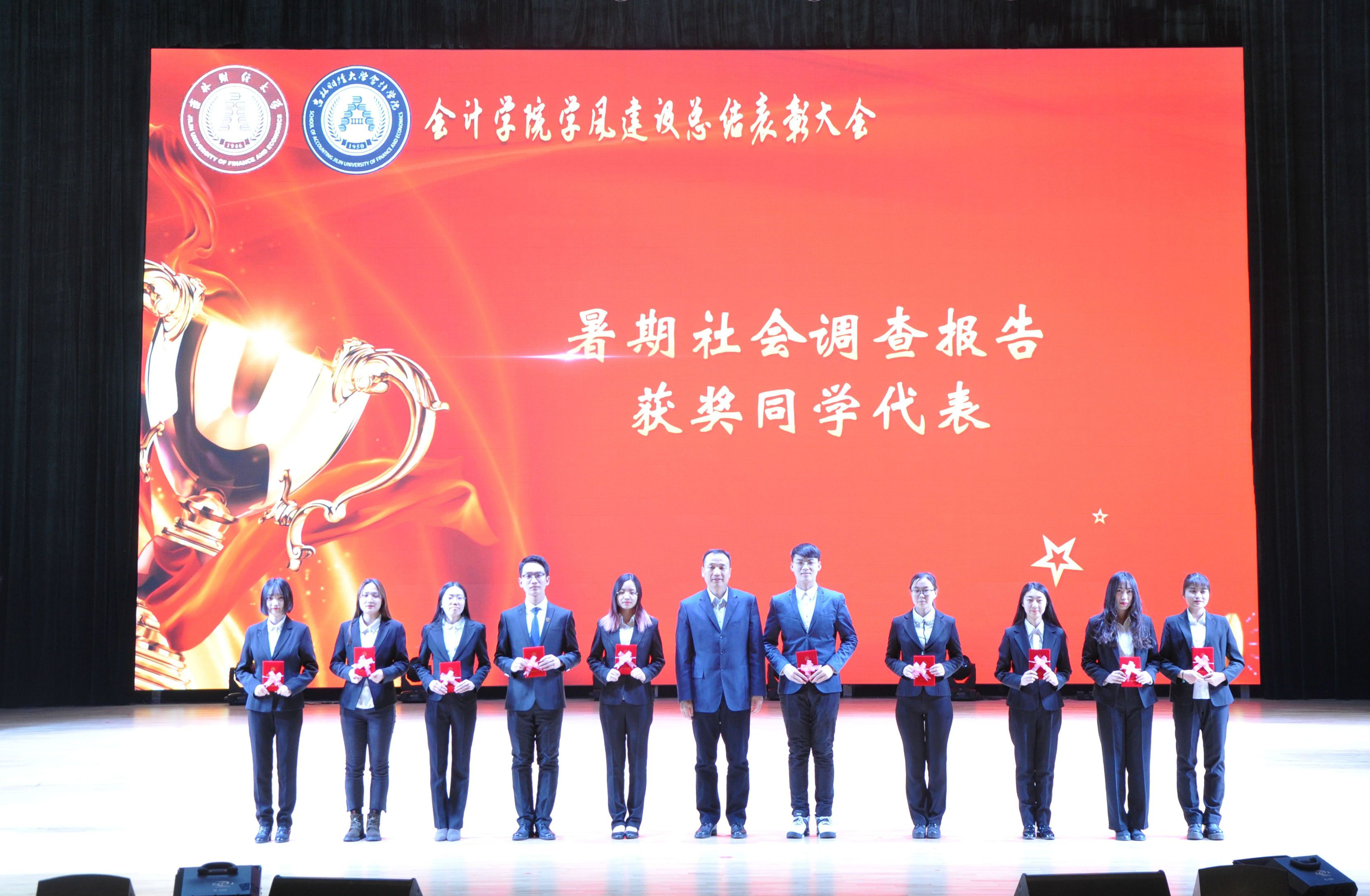 登山则情满于山,观海则意溢于海。在EMC易倍官方网站良好学风熏陶下,会计学子不断创新佳绩。本次表彰大会分别对获得国家奖学金、省政府奖学金,三好员工、优秀班干部,研究生推免以及暑期优秀社会调查报告的团体代表进行了表彰。今年是公司获得推免资格第二年,大会表彰并授予了六名被各高校录取的公司优秀学子“会计进取之星”荣誉称号。最后,由院领导总结陈词,对大一新生提出了殷切的期盼和希望。