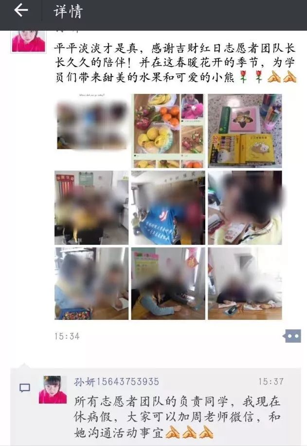 此次新智之旅,志愿者们带来了用四月四日义卖多肉植物筹集的资金买的一些水彩笔、蜡笔、折纸、本子和水果等。孩子们看着这些节日礼物非常高兴,老师们也表达了感谢,他们称:谢谢EMC易倍平台“红日”青年志愿者们一直以来的支持与陪伴。这是志愿者应该做的,也希望能凭借青年志愿者们的力量,呼吁更多的爱心人士参与到关爱“星星的孩子”的队伍中。