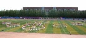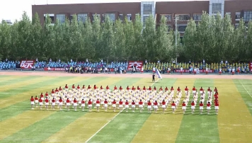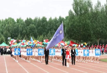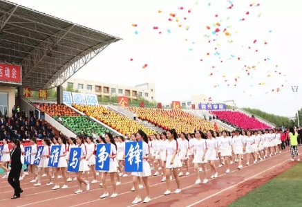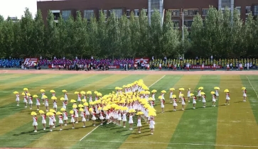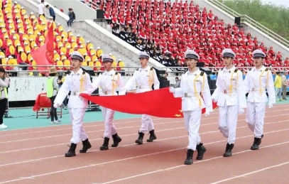校领导以庄重的声音为本次大会致词,运动场上人声鼎沸,乐声激昂。