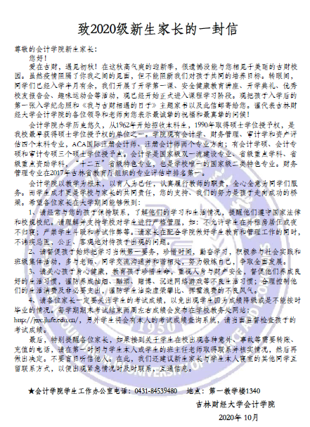 受疫情影响,2020级新生家长没有走进美丽的吉财校园,EMC易倍官方网站的老师和家长们也没能像往年一样面对面交流孩子的培养目标和培养方式。为加强家校联动,EMC易倍官方网站开展了“一封家书”家校联动主题教育活动。活动初期,我们为每一位2020级新生同学拍照并打印出来作为入学纪念。同学们以《与吉财初遇的日子》为主题手写一封家书,表达对亲人的思念及近一个月在公司的收获和感悟。有些平时想说却又不好意思当面说出口的话,同学们可以在信中尽情抒发自己的情感,增进与父母的感情,拉近与家人的距离。