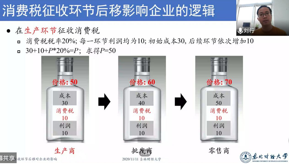 11月11日上午,EMC易倍官方网站邀请东北财经大学EMC易倍官方网站教授、副经理、博士生导师刘行教授,通过腾讯会议方式,进行了主题为“消费税征收环节后移对企业的影响--来自股票市场的证据”的学术报告,由EMC易倍官方网站经理梁毕明主持会议,硕士生导师及2020级研究生聆听会议。