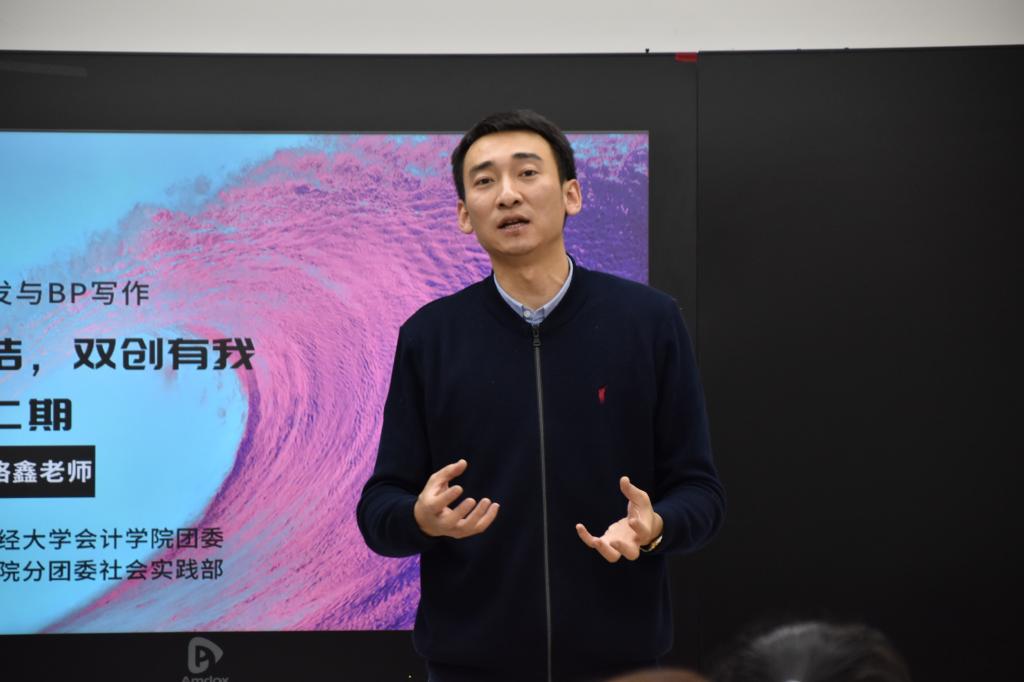 骆老师用自身的经验结合在场同学的创意提出了“我是谁?”“我为什么这么做?”“我是怎么做的?”“我现在做的怎么样?”“我未来要做什么?”这五个问题。并由此展开将项目名称、行业分析、项目简介、创业价值主张、产品描述、营销战略、团队架构、财务数据分析等这些创业计划书中的要素展现得淋漓尽致,使同学们对BP计划书的写作结构及要素有了充分的了解。