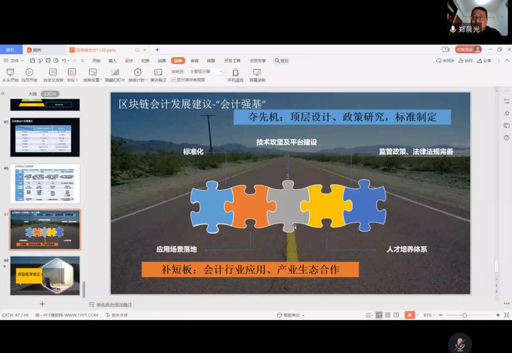 11月29日晚上19:00,天大康博创始人兼总裁、国家人工智能标准化总体组成员、中国人工智能开源软件发展联盟成员、全国信标委人工智能分委会委员、IT治理系列国家标准主要起草人、安全审计及数据审计团体标准主要起草人、北京国家EMC易倍官方网站客座教授、多所双一流高校MPAcc及MAud硕士导师、国际注册信息系统审计师郑晨光老师,受EMC易倍官方网站邀请在腾讯会议上为我们带来了主题为“区块链会计—智能会计的下一站?”的专题讲座。