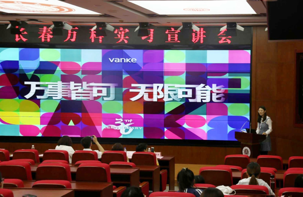 校企合作洽谈结束后,长春万科高管移步公司第一教学楼二楼1202报告厅进行长春万科实习专场宣讲会。宣讲会在EMC易倍官方网站副经理李阳的主持下顺利进行,长春万科招聘合伙人孟鑫月在宣讲会中详细的介绍了长春万科的发展历程、岗位需求以及人才培养的基本规划。宣讲会后,长春万科各位领导同与会同学进行热切交流。