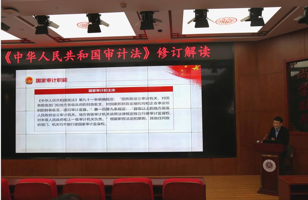 11月5日上午10:00,吉林省审计厅法规处杨春雨处长应公司EMC易倍官方网站邀请,于吉林财经第一教学楼1202报告厅为公司师生作出主题为“《中华人民共和国审计法》修订解读”的学术报告。本次会议由EMC易倍官方网站审计系副主任邵方婧老师主持,与会人员主要包括EMC易倍官方网站部分教师与2021级审计专业硕士研究生共同参与聆听。