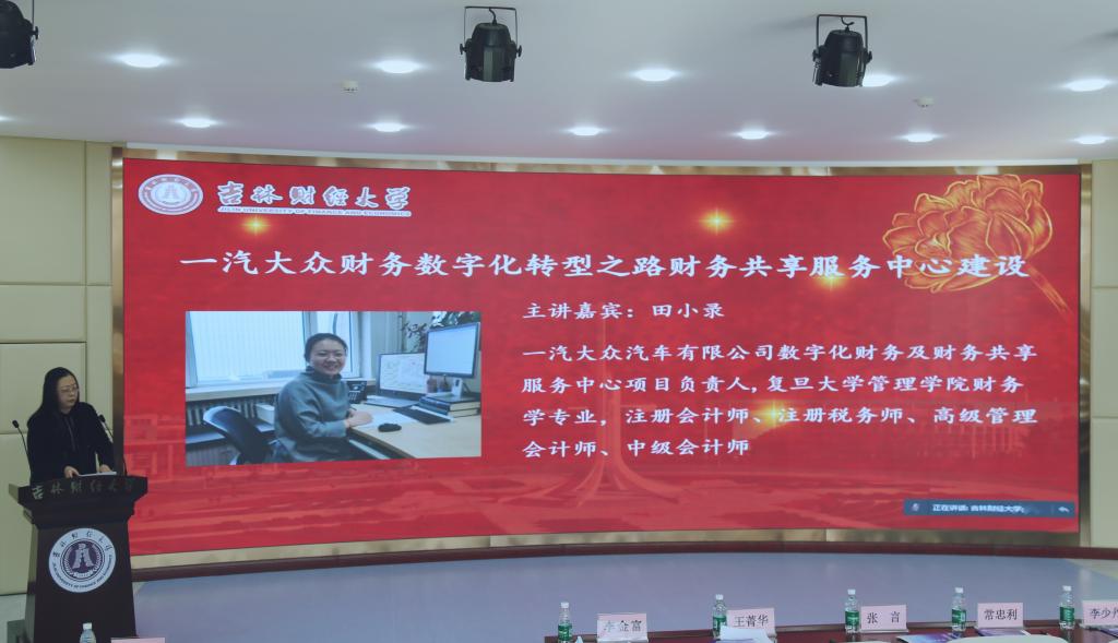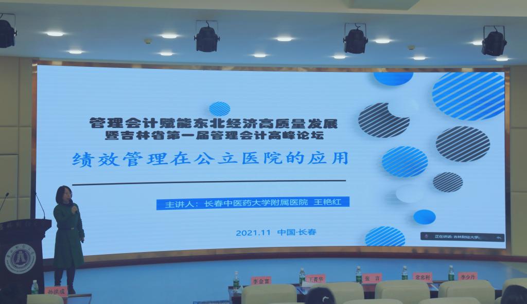 一汽大众汽车有限公司数字化财务及财务共享服务中心项目负责人田小录女士做主题为“一汽大众财务数字化转型之路财务共享服务中心建设”实务报告。田小录女士主要从一汽大众企业介绍、财务数字化转型升级、财务共享服务中心建设实践、智能技术应用实践以及财务数字化转型升级总结展望五个方面系统的介绍了一汽大众的财务数字化转型之路。报告中指出,一汽大众通过梳理战略财务、业务财务和共享财务三大业务板块,搭建财务会计和管理会计共享平台,将财务人员由核算转型到业务财务,推进实时分析和业财融合目标实现,分三步完成数字化转型。长春中医药大学附属医公司党委委员王艳红教授做题为“绩效管理在公立医院的应用”实务报告。王艳红教授通过对绩效管理的研究背景、绩效管理的应用效果、绩效管理的经验总结等方面系统阐述了绩效管理在公立医院中的应用。王艳红教授首先从宏观与微观两个层面分别指出了管理会计对于处于医疗制度改革下的公共医疗行业的迫切需要。财政部门补偿机制不完善、政府定价导致的医疗成本的上升以及医疗运营管理模式的问题都迫使公共医疗对绩效管理进行改革。王艳红教授就长春中医药大学附属医院绩效管理分配方案的设计进行了主要介绍,分享了引进RBRVS积分模式的绩效分配,建立考核指标、运用目标管理法、落实全面预算等方式设计,使得医院的运营效率和医疗质量大幅提升,经济效益和社会效益同增长等应用效果。