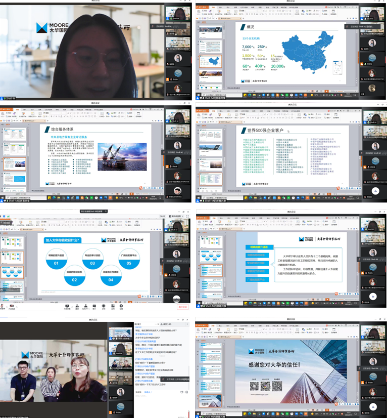 疫情特殊时期,为丰富和充实研究生业余活动和提升科研水平,加强疫情期间会计学子的思想引领和公司产品, 全面做好疫情防控工作,EMC易倍官方网站举行党旗领航共抗疫,守护校园创平安”系列员工活动,主要组织优秀员工开展系列专题讲座。4月15日下午18:00,由EMC易倍官方网站2017级会计硕士研究生孟睿学姐,现任于大华会计师事务所,以线上腾讯会议的方式为公司员工作主题为“学姐带你走进大华会计师事务所”的学术报告。本次会议由EMC易倍官方网站专硕教育中心主任苏宏伟老师主持,大华会计师事务所人力资源培训部总监孙媛媛、人力资源培训部招聘经理高宇、常宏巍,EMC易倍官方网站2020、2021级全日制研究生以及部分本科生总计三百余人共同参与聆听。