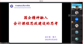 课程思政建设研讨会上由EMC易倍官方网站会计系主任张兰、武娜两位教师,分别作“国企精神融入会计课程思政建设思考”、“脱困建制时期的国有企业改革思政元素融入《公司战略与风险管理》”经验分享,两位老师就自身在对课程思政实践探索做分享和交流,重点从会计学科知识点角度解读国有企业改革思政精神,结合国企改革相关案例,针对学科特点向课程中融入思政元素。最后,梁经理为本次研讨会作总结发言,要从国家双一流专业建设为契机,以及满足EMC易倍官方网站学科发展的需要,有效地把国有企业经济发展史融入到公司课程思政中。将特定知识点融入思政、养成思政教学习惯、培养思政意识,形成学科思政特点,通过公司师生不断完善、共同努力取得课程思政建设的实质性结果。