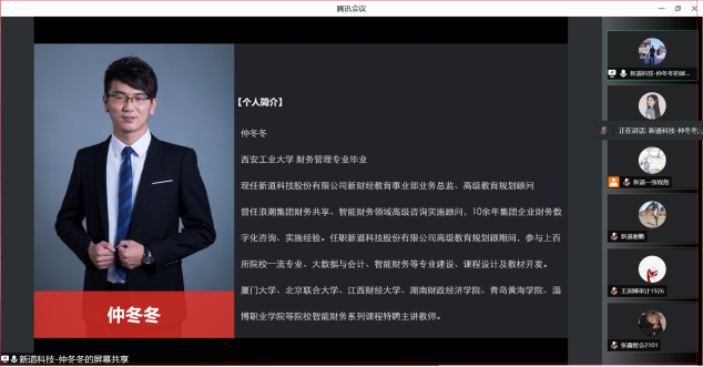 集训营第一次课由用友新道科技有限公司仲东东为本次集训进行“企业数字化与财务数字化”主题的报告,他从企业数字化转型、财务数字化转型以及大数据技术应用三个方面逐步展开财务大数据这一主题;他以介绍企业数字化与财务数字化应用的场景为财务大数据知识做铺垫,以生活中主要的数字化场景来生动形象的解释数字经济的主要特征,以滴滴等平台的数字化应用以及微软、阿里巴巴等企业市值变化表明平台型企业正在成为数字经济时代的主导者;他通过运用“互联网+”战略的李宁品牌为例,全面阐述数字化转型是企业有效应对市场快速变化的有效抓手,通过利用网络平台运营的阿里巴巴、美团等企业为例,直观反映数字技术推动企业组织模式创新;同时他还讲述了财务数字化的特点与具体流程等内容,从企业财务数字化转型路线具体说明财务数字化逐渐由业财融合向财务共享、财务大数据财务RPA、智能技术方向转变。本次集训对公司财会师生了解企业数字化、财务数字化、大数据分析等大数据前沿问题提供了很好的机会,有利于师生深刻认识会计行业发展的新趋势以及面临的新挑战。