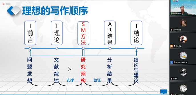 “暑期实证研究方法与论文写作集训营”第一次启动课由北京巨大量化科技有限公司董事长张伟豪老师做实证研究方法总体指导。张伟豪老师指出论文写作要掌握正确的方法,走在“正确”的道路上会事半功倍,并且要善于运用相应工具,提高写作效率。张伟豪老师通过讲述ITSMART整个论文写作的指导性框架,以个人多年论文经验开展自己的独特见解,将其量化为背景介绍、理论、抽样、测量、分析、结果以及讨论与结论等方面。其中,理论与结论是文章的精髓,建议广大师生先建立起研究框架,以其为中心,文献综述与前言作为架构的支撑,分析结果与结论建议作为架构的验证,提高文章写作的效率与质量。张老师将研究方法分为研究架构、研究假设、问卷发展、研究对象与统计分析等方面,围绕各个层面详细展开,并以全球量化研究网为例,为各位师生演示如何快速查询、筛选数据。随后,将文献综述、绪论等架构的支撑部分进行详细解读,把分析结果与结论建议等架构的验证部分剖析演示。本次写作集训营对公司师生系统掌握知识、探讨前沿社会问题、掌握数据分析的基本能力提供了极大帮助,有利于提高EMC易倍官方网站师生定量研究的水平以及整体能力。