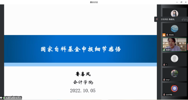 10月5日,EMC易倍官方网站举办2023年“两金”项目申报(线上)系列辅导会。公司副教授鲁喜凤作了“国家自然科学基金申报细节感悟”的主题学术报告,公司筹备申报“两金”项目的部分教师与2020、2021级全日制学术研究生参加了报告会,会议由会计专硕教育中心主任苏宏伟主持。