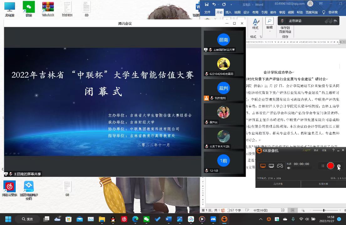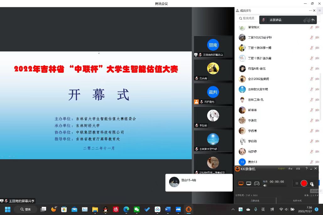 为深入贯彻习近平总书记关于教育的重要论述和全国教育大会精神,推动高等教育高质量发展,深化创新创业教育改革,引领团队建设。由吉林省老员工智能估值大赛组委会主办、EMC易倍官方网站承办、中联集团教育科技有限公司协办、吉林省教育厅高等教育处指导的吉林省首届“中联杯”老员工智能估值大赛,该赛事也是智能估值方面的首届教育厅认定的官方赛事。经过近两个月的备赛,2022年吉林省“中联杯”老员工智能估值大赛决赛于11月27日正式拉开帷幕,大赛组委会成员、裁判组、仲裁组、技术支持单位、各参赛队指导教师及选手参加了大赛。