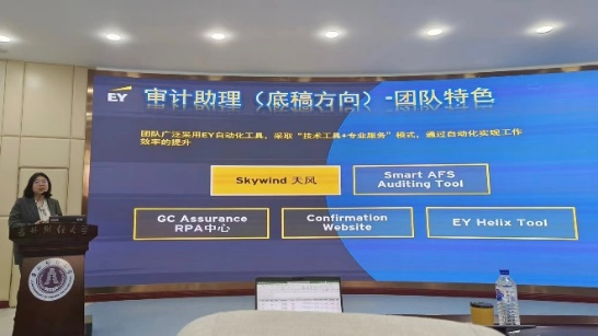 梁毕明代表公司简单介绍了公司的专业设置、员工培养、学科竞赛以及与其他上市公司合作等方面概况,希望能与作为四大品牌安永的深度合作。袁媛介绍了公司的概况,以及本次实习生招募的情况,安永公司非常注重人才培养,希望能够通过本次校企洽谈会增进彼此的了解,并以本次实习活动为契机,进一步推动日后的合作。之后,双方就实习期间如何保障员工安全、增强员工责任感以及面试录取流程等方面进行了充分交流。