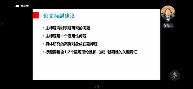 张俊生从案例的教学讲到案例的研究;在结构上细分案例目的和类型,介绍了案例研究适用的场景,并分享了优秀学位论;然后,解析了理论起点,列举了真实案例;重点强调了文献述评、案例分析部分写作、结论与启示部分写作的建议。