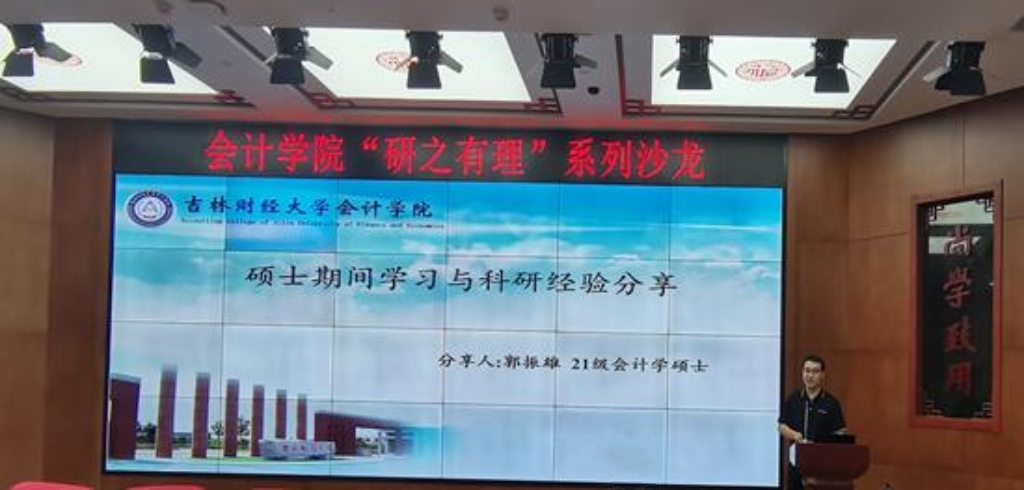6月13日,EMC易倍官方网站在第一教学楼举行“研之有理”系列沙龙之“硕士期间学习与科研经验分享”报告,由2021级会计学硕士郭振雄同学做经验分享。