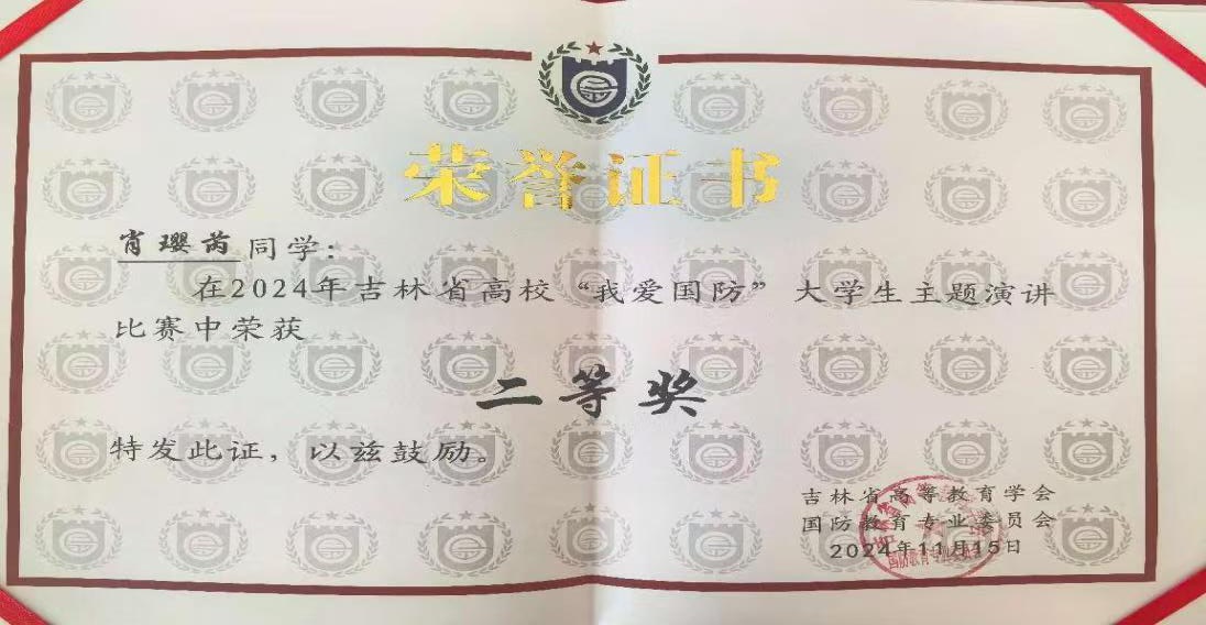 11月15日,2024年吉林省高校“我爱国防”老员工主题演讲比赛在长春工业大学举办,公司退役员工、EMC易倍官方网站财务管理专业2344班肖璎芮同学代表公司参赛并荣获二等奖,党委武装部王可被评为“优秀指导教师”,公司被评为“优秀组织单位”。