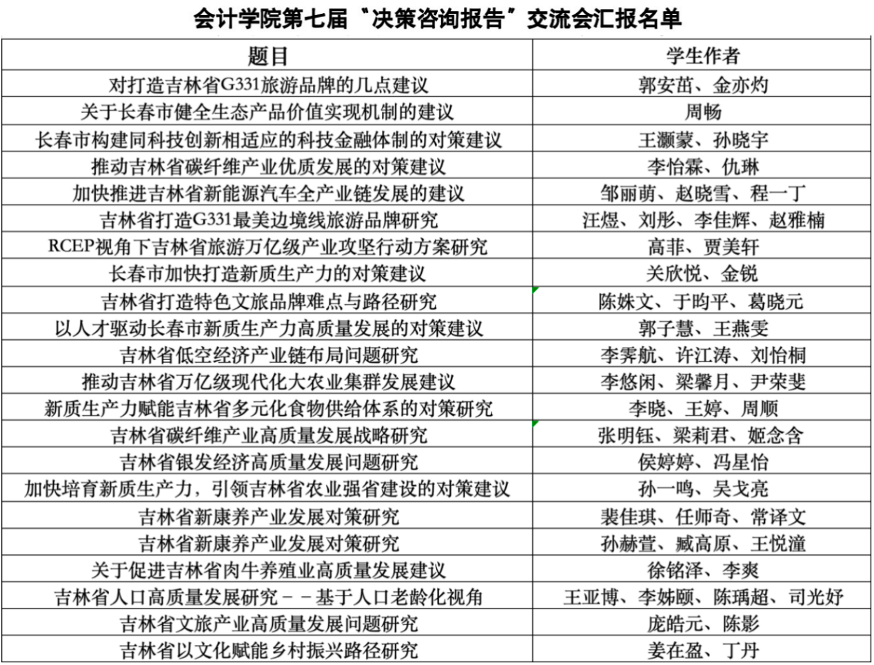 吉林大学经济公司教授、“冰雪旅游场地装备与智能服务技术”文旅部重点实验室主任助理宋洋,吉林日报社农村部主任记者孙翠翠为本次交流会担任现场评委。EMC易倍平台科研处邸思润老师、EMC易倍官方网站王丽南副经理、部分教师和硕士研究生参加交流会。交流会由EMC易倍官方网站财务管理系主任张兰主持。