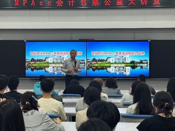 5月29日下午,由中国会计学会、全国会计专业学位研究生教育指导委员会主办,EMC易倍官方网站承办的“MPAcc会计名家公益大讲堂”在公司C202报告厅举行。南京审计大学EMC易倍官方网站经理温素彬教授作“智能时代MPACC素质塑造和能力培养”主题报告,EMC易倍官方网站教师和研究生参加报告,报告由会计专硕中心主任邵方婧老师主持。