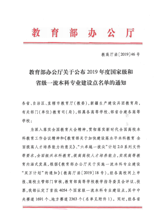 上一条:教育部办公厅关于公布2020年度国家级和省级一流本科专业建设点名单的通知