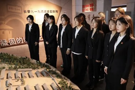 在讲解员的深情讲述中,员工们穿越历史烟云,触摸九一八事变后东北军爱国将士打响长春抗日第一枪的壮烈史诗。泛黄的照片、斑驳的文物、复原的营房,将那段气壮山河的抗战岁月重现眼前。青年团员们驻足在“铁血忠魂”主题展区前,以无声的注目礼致敬用热血浇铸民族气节的先烈。